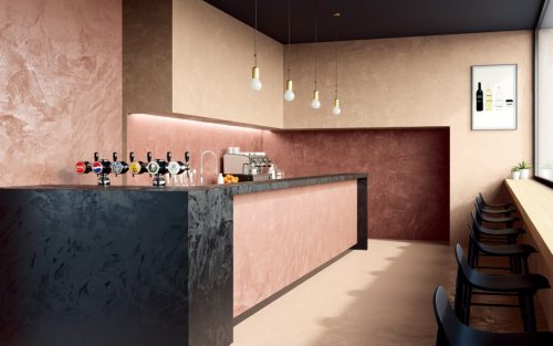 コンティニューオは薄く軽く固く、壁や床に使えるモルタル風仕上げの塗り壁材です。