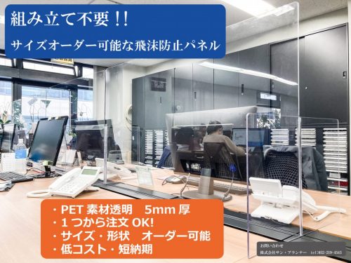 弊社では飛沫防止パネル、アクアウィッシュ等のコロナ対策商材や