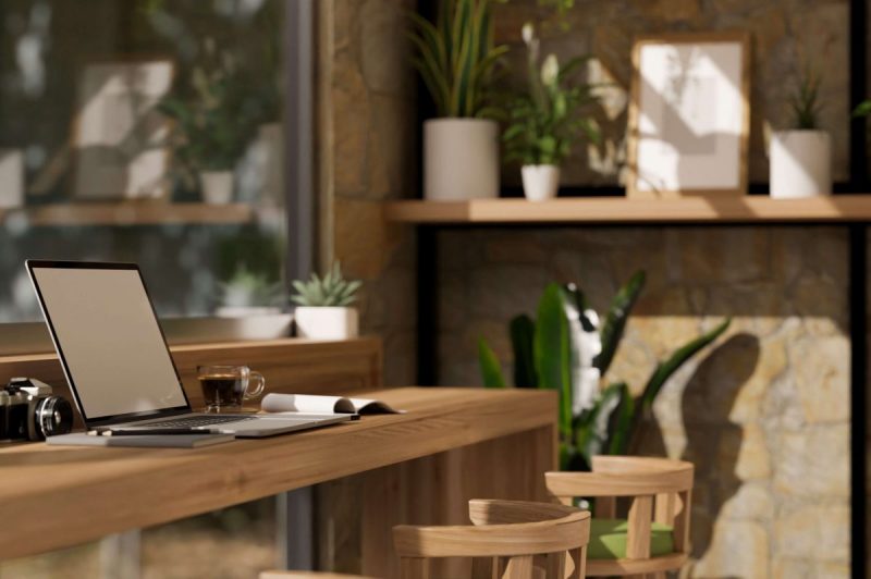 アースカラーは集中力を高める効果があるため、デスクを木製のデザインにすることで、生産性の向上にもつながります。
